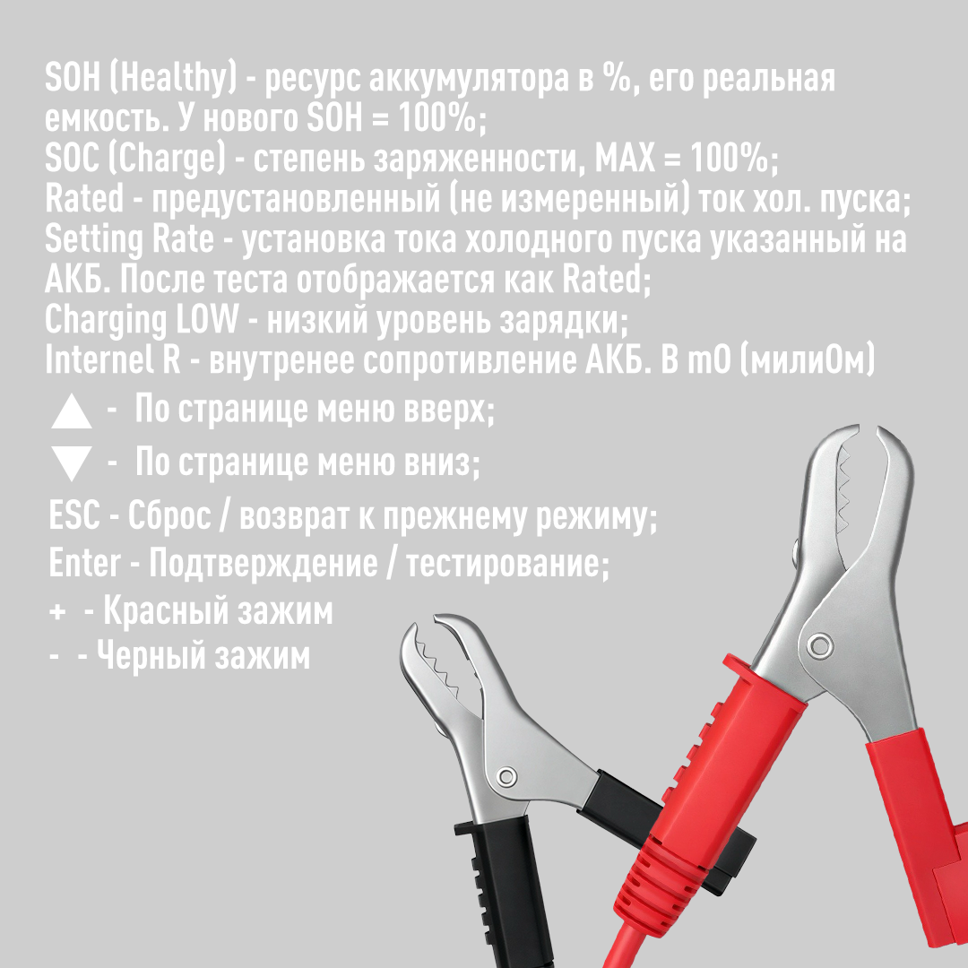 Допустимое напряжение тестируемого АКБ от 9v до 15V постоянного тока!