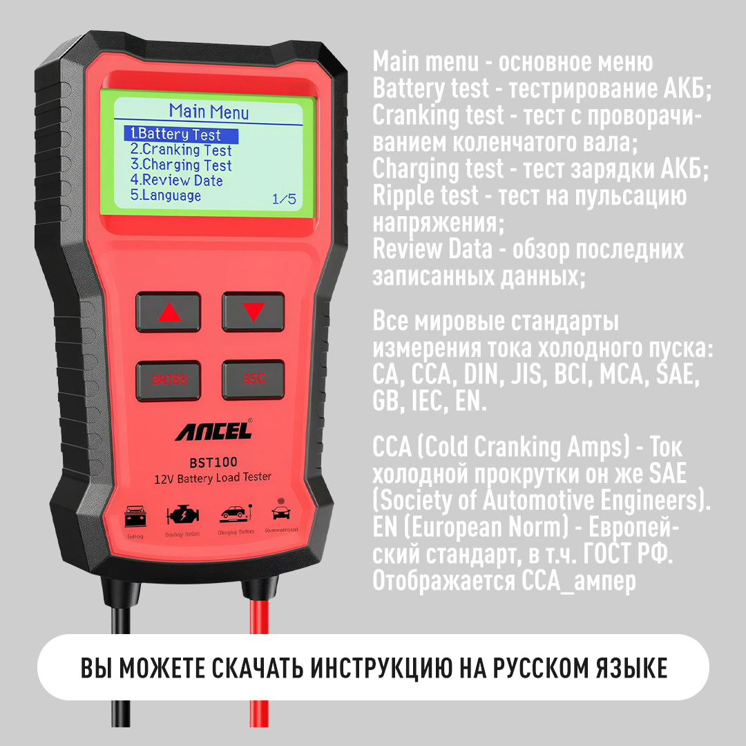 (анализатор) аккумуляторных батарей ANCEL BST100 с цифровым