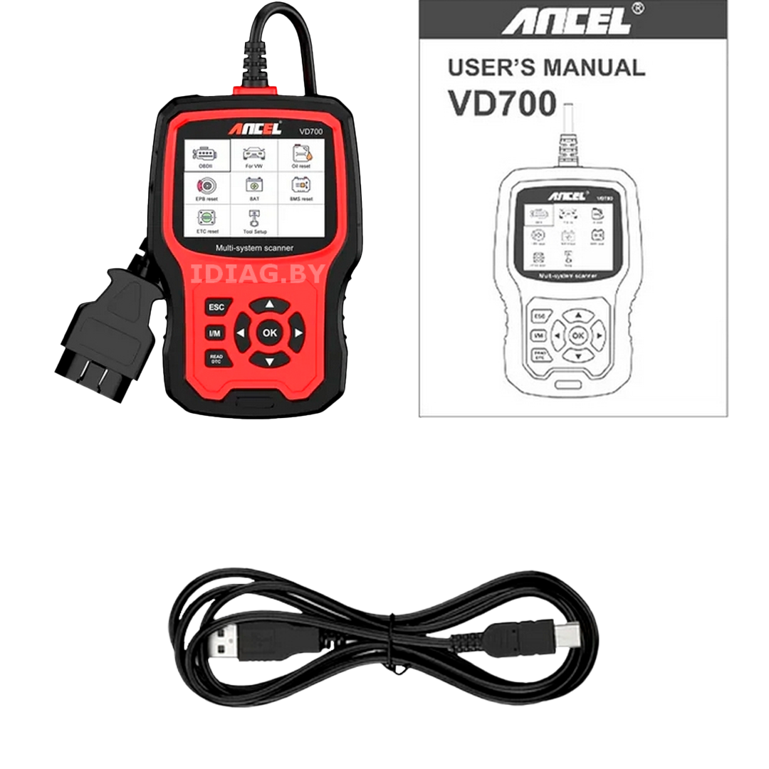 Ancel VD700 - портативный диагностический сканер для автомобилей Audi, VW, Skoda, Seat. Доступна не только диагностика, но и спецфункции VAG. Поддерживает автомобили до 2022 г.в. (обновляется)