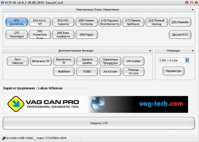 Возможности VAG CAN PRO позволяют производить диагностику различных электронных систем автомобилей производства концерна VAG, а также их программирование. Он подходит для работы с авто марки Audi, Volkswagen, Skoda, Seat с 1990 по 2017 г.в.
