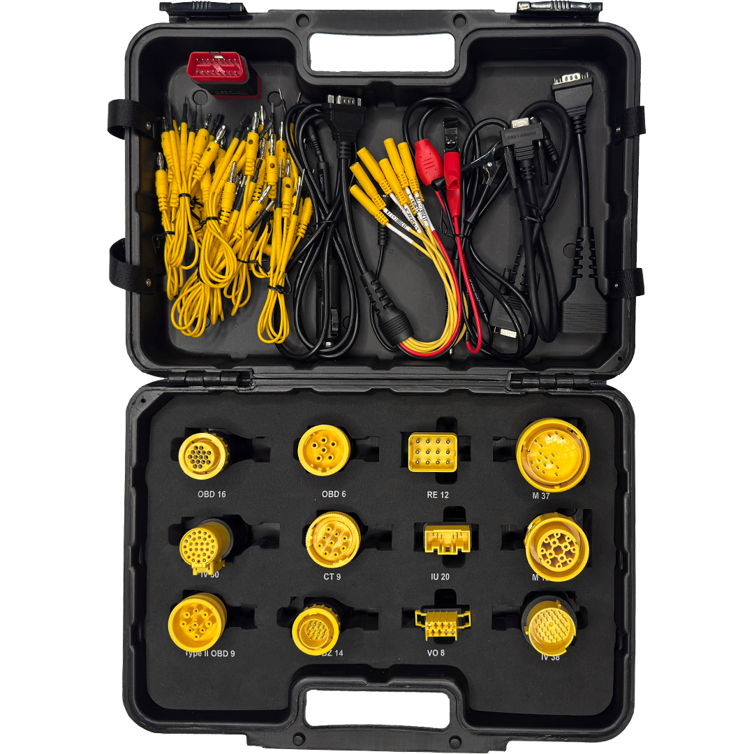 Комплект грузовых адаптеров для сканеров Launch. Включает в себя все необходимые переходники и адаптеры для диагностики наиболее распространенных грузовых авто.