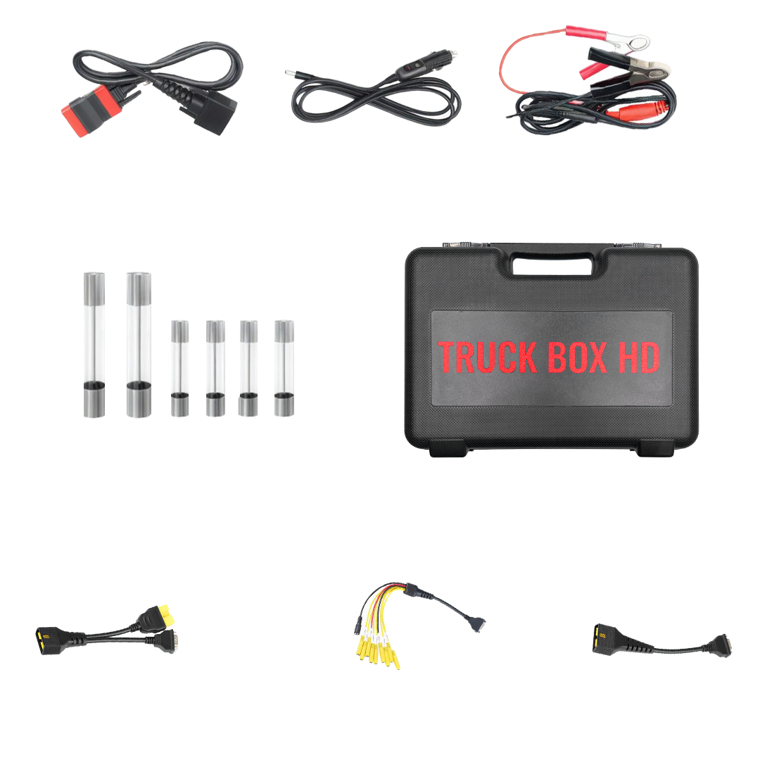 ВНИМАНИЕ! Переходники X-431 Truck Box HD могут также использоваться для диагностики грузовых авто со сканерами Launch DBScar7 (или Thinkdiag). В этом случае обязательно следует использовать конвертер 12-24В, основной кабель Launch OBD2 female и программное обеспечение для грузовых авто (HD).