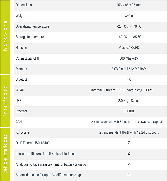 - Поддерживает CAN FD, CAN, K/L и DoIP