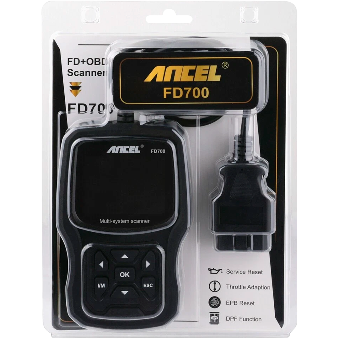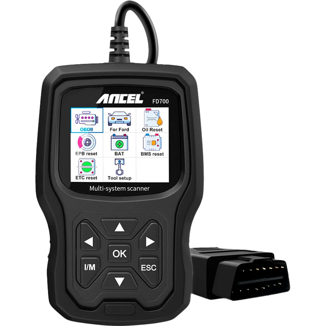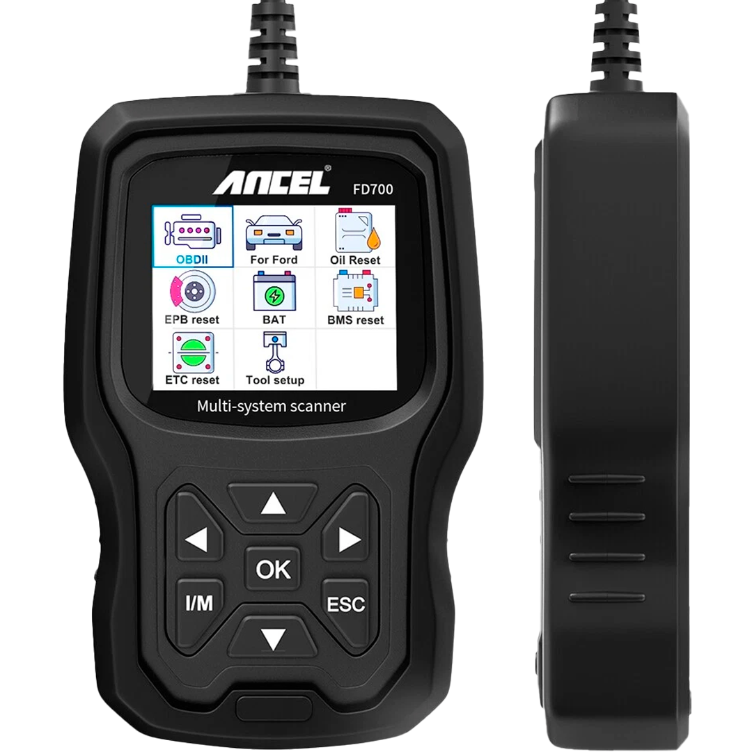 ANCEL FD700 - профессиональный диагностический OBD2-сканер, специально разработанный для автомобилей Ford, Lincoln и Mercury. Это обновлённая версия популярной модели FD500 с расширенным набором сервисных и специальных функций. Поддерживает автомобили с 1996 года выпуска с 16-контактным разъёмом OBDII, включая Ford F-150, Transit, VAN и другие модели Ford Group.