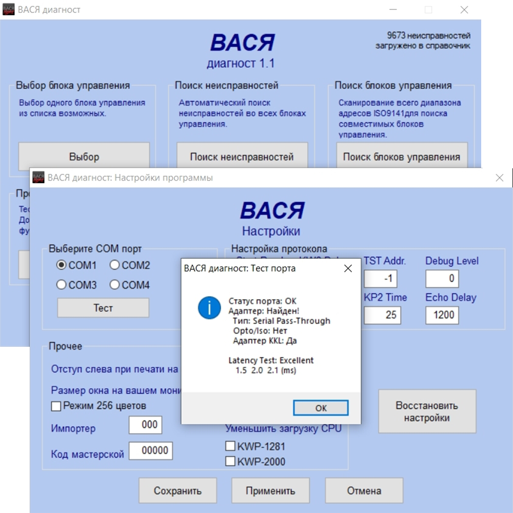 Данные автомобили поддерживают низкую, а иногда только фиксированную (10400-14400) скорость передачи данных для связи ЭБУ с диагностической программой.