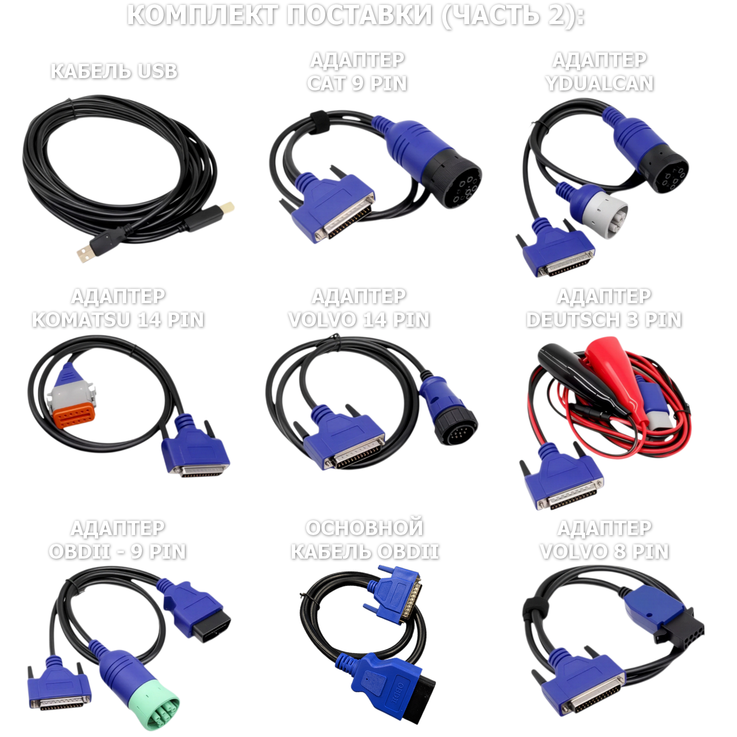 Подходит для диагностики: тракторов, комбайнов, опрыскивателей, экскаваторов, погрузчиков, строительной техники, а также некоторых моделей самосвалов.