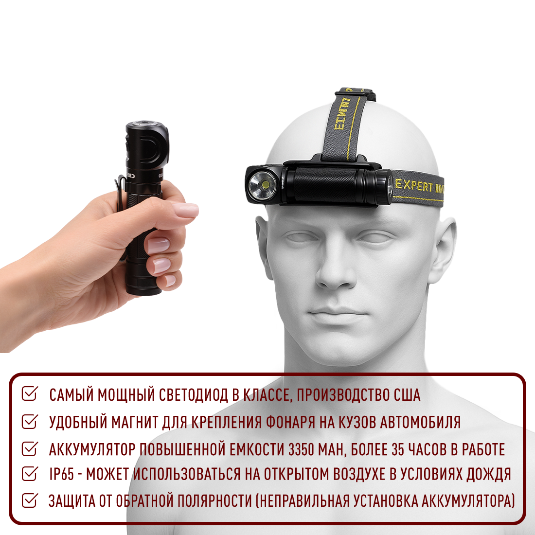 Фонарь EXPERT 1000 оснащен высокоэффективным светодиодом Cree XP-G3 (самый мощный светодиод в своем классе), который способен находиться в режиме работы (средний режим) до 35 часов.