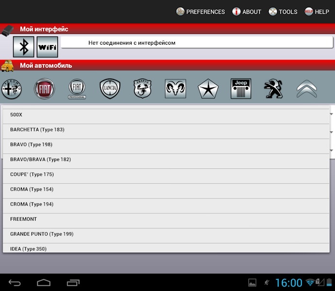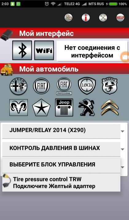 Функции автосканера Fiat Group: