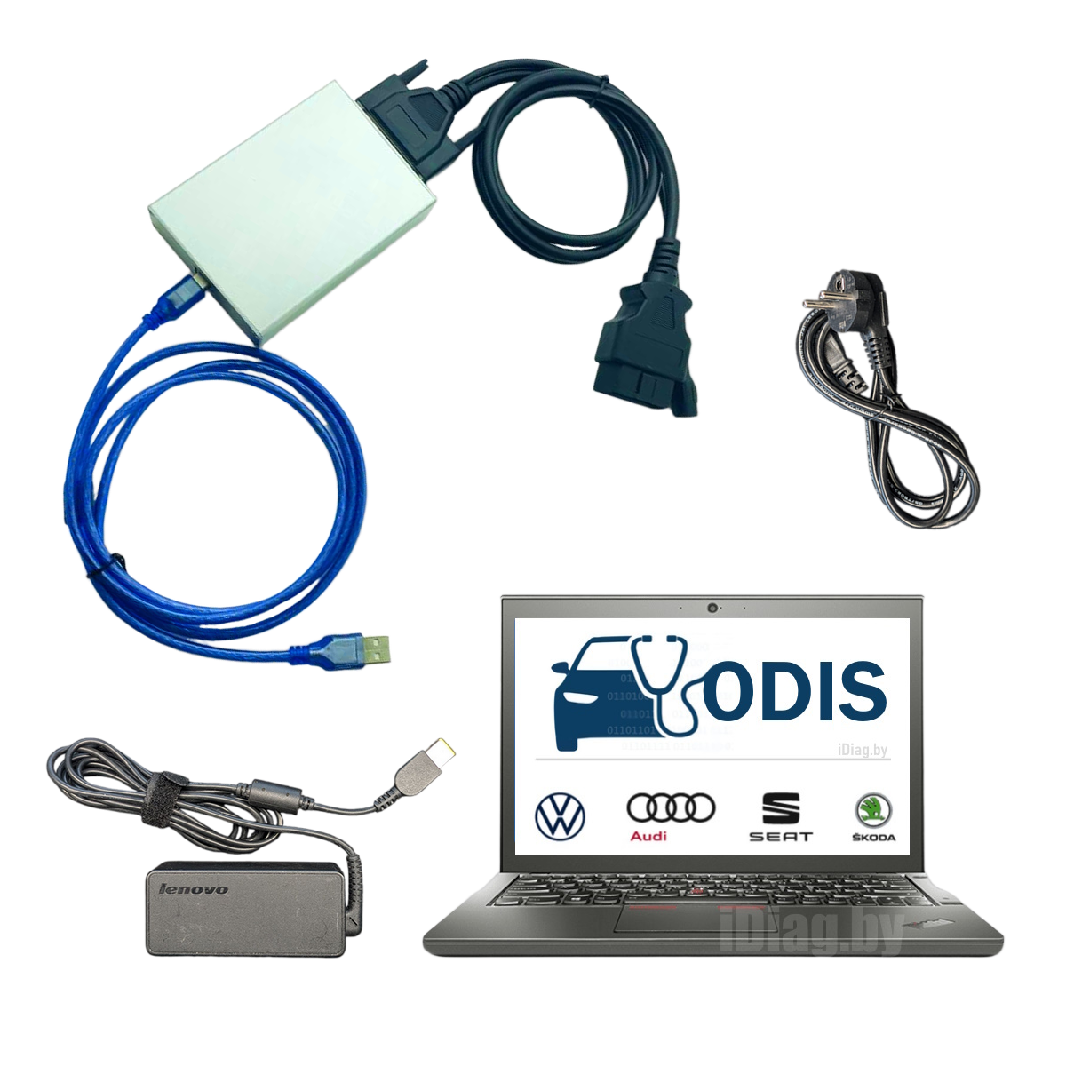 На ноутбук предустановлено дилерское программное обеспечение ODIS Service 23.01 и ODIS Engineering 17.01 для профессиональной диагностики и программирования автомобилей VW, Audi, Skoda, Seat до 2023 года.