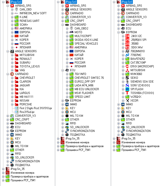 24хх, 25хх, 95хх, SРI, 35080, 93хх, 7002МN010, 77007, ЕRХХ, М6М80021, NVМ3060, ВАW574252, РDН004, 2430, 2444, Р2100r, SIЕМЕNS SDЕхх SDАхх, SОNY SСКхх, SРI FLАSН, ТОSНIВА ТСхх, ХIСОR и т.д. Так же добавлена: индикация рабочего состояния, места под установку микросхем SОIС, ТSSОР, МSОР (под зажим на плате и пайку), разъем для подключения “прищепки”, а так же зажим для “кроваток“ и других приспособлений;