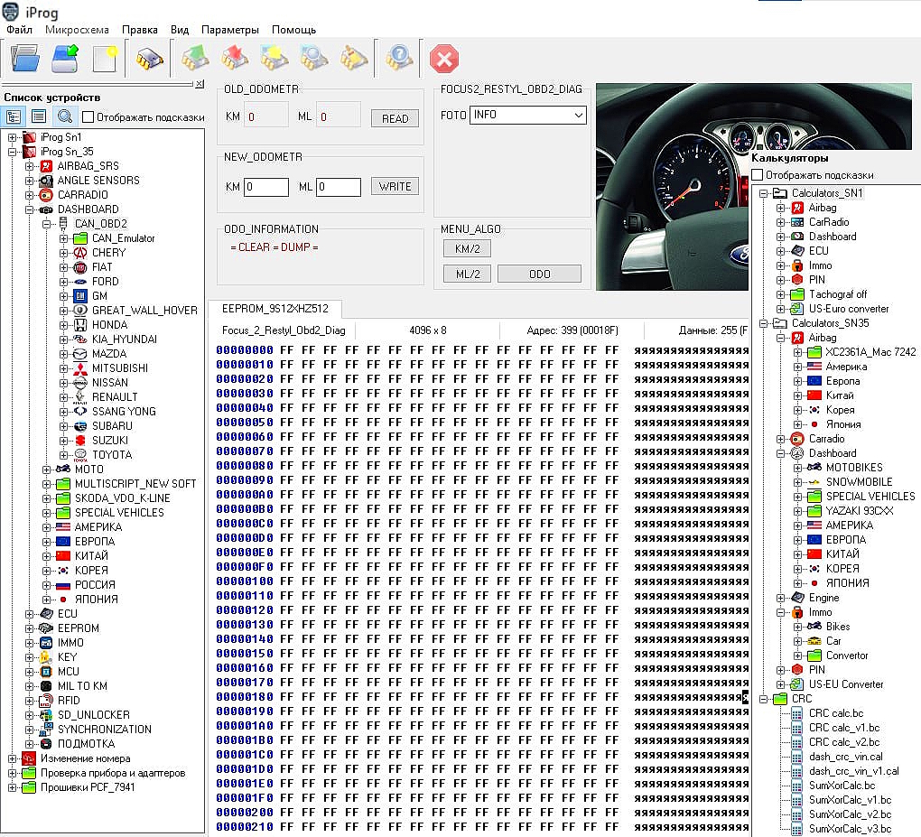 - Работа с одометрами через OBD2