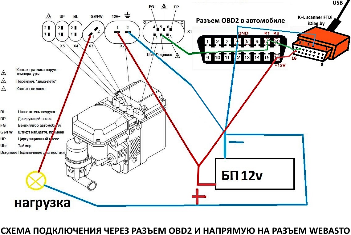 • Диагностика предпускового обогревателя Webasto.