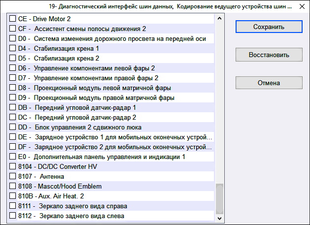 - добавлены адреса длиной 2 байта, такие как: 8111- Зеркало заднего вида справа;