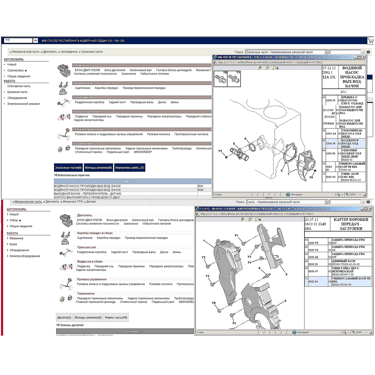 Включает в себя электросхемы, каталог запчастей и подсказки по ремонту.