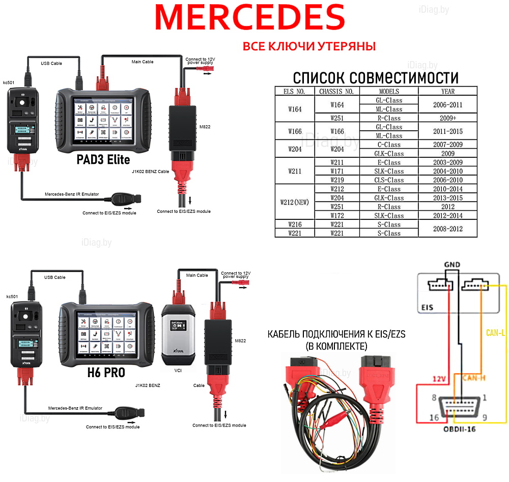 *Примечание: Пожалуйста, проверяйте подсказки на планшете Xtool, при подключении с помощью кабеля J1K02_BENZ.
