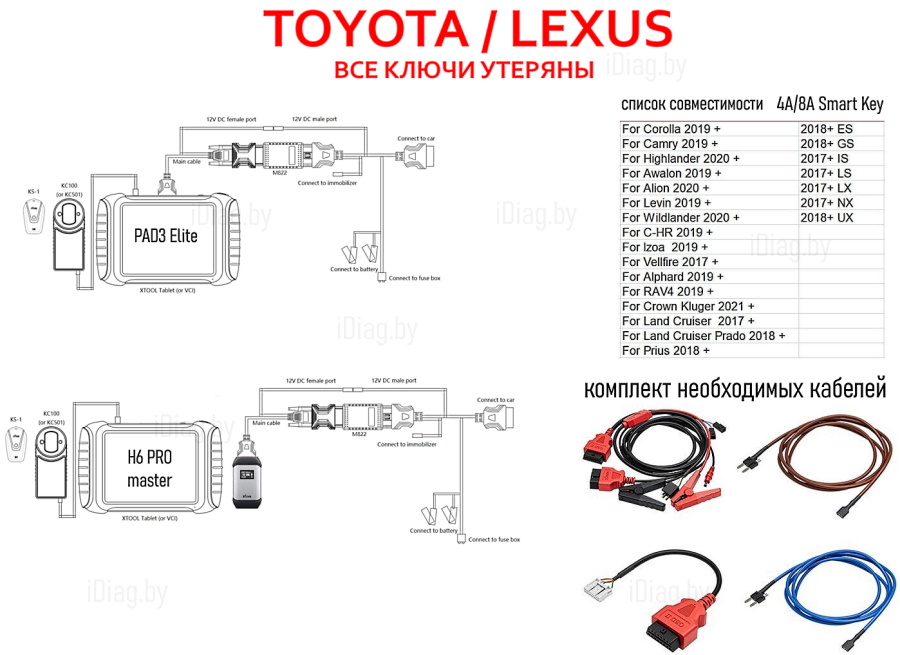 Для использования вам понадобится прибор Xtool H6 Master или Pad3 Elite + KC501 или KC100.