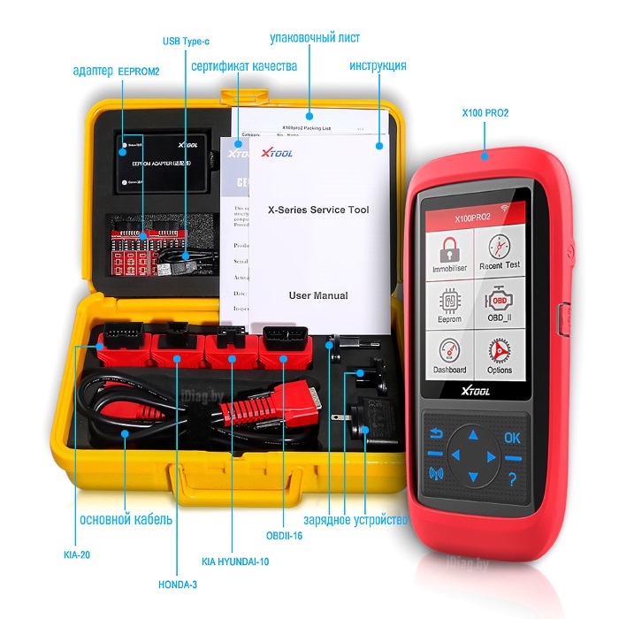 Данный программатор ключей и пробегов прост в использовании, для работы не требуется разборка компонентов автомобиля и выпаивания микросхем, весь процесс работы происходит через диагностический разъём автомобиля.